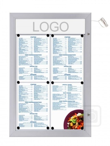 Gablota na menu z panelem na logo 4xA4-LED