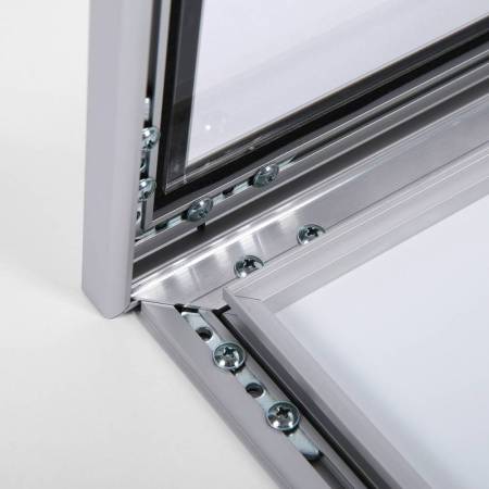 Magnetyczna gablota na menu w różnych rozmiarach z dodatkowym miejscem na logo. Panel przedni wykonany jest z poliwęglanu. Aluminiowa rama stanowi stabilną, zamykaną na kluczyk konstrukcję. Plecy z blachy pomalowane na biało, umożliwiają stosowanie magnesów lub suchościeralnych markerów. Gablota do zamontowania na ścianie. Nadaje się do stosowania wewnątrz lub na zewnątrz pod zadaszeniem. Jej minimalistyczny styl sprawia, że jest idealna do stosowania w restauracjach, szkołach, muzeach, sklepach lub na siłowni. Biała, magnetyczna gablota na menu dostępna jest również w wersji z podświetleniem LED 12/24V. Taśmy umieszczone są po bokach witryny, doskonale oświetlając prezentowane treści.