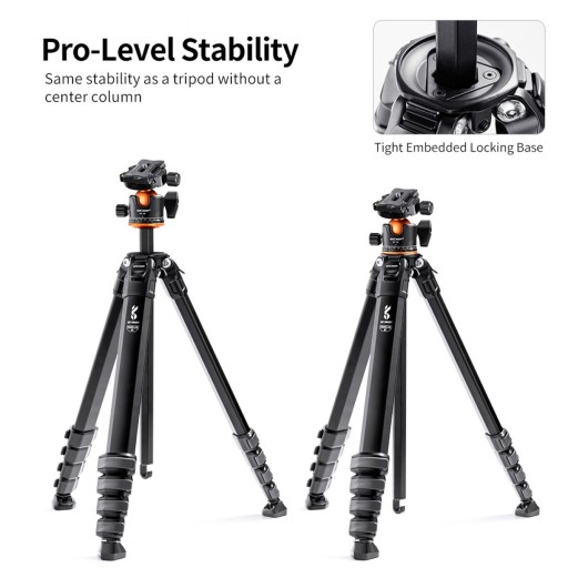 Środkową kolumnę statywu podróżnego można odłączyć lub zmontować w 3 krokach, oszczędzając czas podczas robienia makro lub makrofotografii na ziemi.