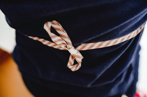 Fartuszek został wykonany z lekkiego, miękkiego oraz łatwo zmywalnego tworzywa.
