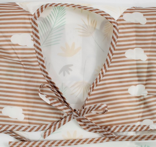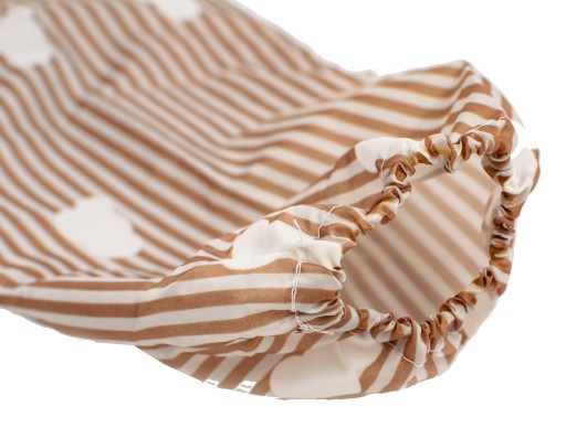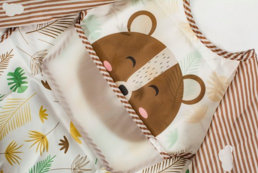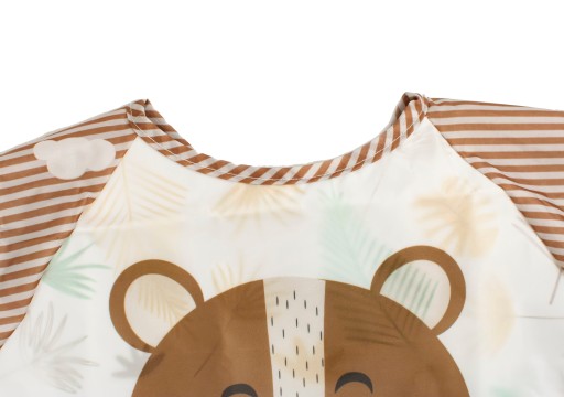 UWAGA! Kieszonka jest wszyta na odwrót, co jest zabiegiem celowym. Dzięki temu kieszonka nie przeszkadza dziecku w czasie zabawy, a po odwróceniu na czas posiłku skuteczniej zbiera wypadające resztki pokarmu.