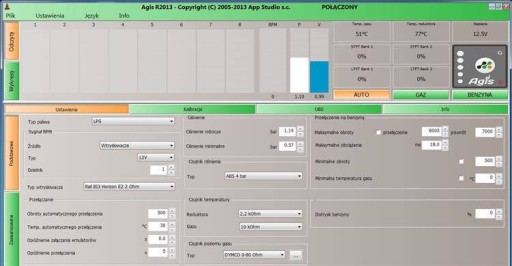Za pomocą interfejsu można zmieniać wszelkie możliwe ustawienia komputera gazowego, takie jak: temperatura przełączania z benzyny na gaz, modyfikacja map, auto-kalibracja, kasowanie inspekcji i wiele innych. Można też w czasie rzeczywistym śledzić parametry pracy instalacji gazowej. Pełna lista dołączonych złącz dostępna na końcu oferty.