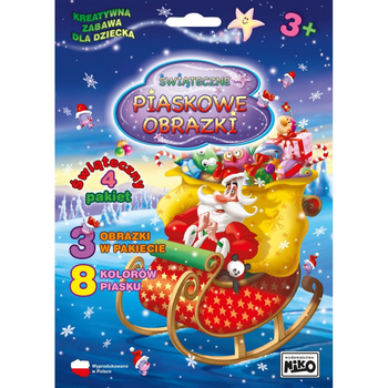 Stwórz magiczną atmosferę świąt z zestawem "Piaskowe Obrazki Świąteczny Pakiet 4: Mikołaj w Saniach"! Idealny sposób na spędzenie czasu z rodziną i rozwijanie kreatywnych zdolności dziecka.