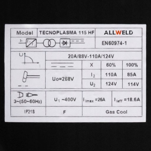 Producent: IDEAL ║ Typ: Cięcie plazmowe ║ Prąd cięcia: 110A ║ Max. grubość cięcia: 40mm ║ Zasilanie: 400V ║ Gaz: powietrze