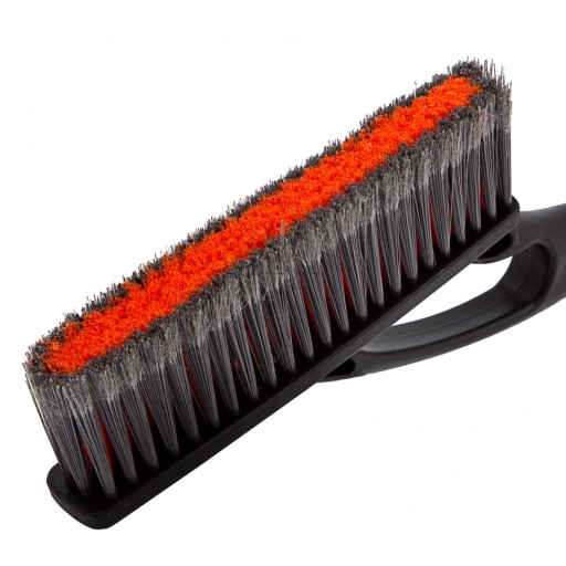 Szczotka z szerokim włosiem nie powodująca zarysowań karoserii samochodu. Gęste rozwłóknione włosie gwarantuje delikatne odśnieżenie powierzchni. Szeroka i wytrzymała skrobaczka z zębami do kruszenia lodu przyśpieszy proces czyszczenia powierzchni z lodu. Wzmocniona rękojeść ze stopu aluminium. Dodatkowo posiada bardzo wygodny i miękki uchwyt.