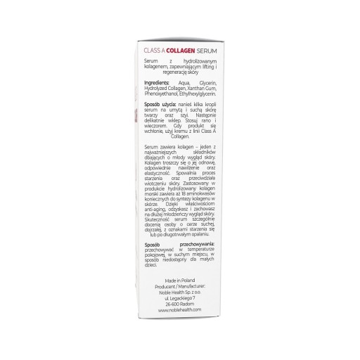 Class A Collagen serum przeciwzmarszczkowe do twarzy z kolagenem Ingredients: Aqua, Glycerin, Hydrolyzed Collagen, Xanthan Gum, Phenoxyethanol, Ethylhexylglycerin.