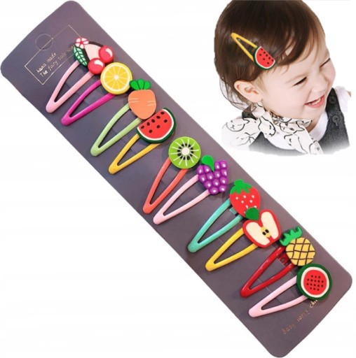 Śliczne, kolorowe spineczki do włosów z owocami dla małej modnisi.