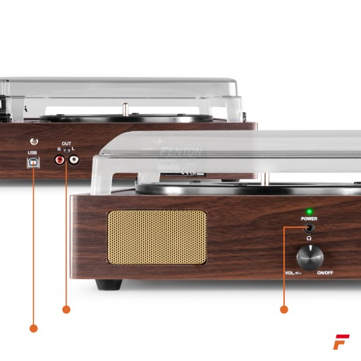 Cofnij się w czasie i przeżyj na nowo klimat i dźwięk swoich ulubionych piosenek dzięki RP106 firmy Fenton. Ręcznie robiona drewniana obudowa ma dwa wbudowane głośniki, dzięki czemu możesz słuchać muzyki bez konieczności podłączania jej do systemu głośnikowego. Poprzez wyjście RCA można łatwo podłączyć zewnętrzne głośniki lub podłączyć parę słuchawek i słuchać solo. Użyj portu USB, aby przekonwertować swój winyl na MP3 za pomocą komputera oraz za pomocą dostarczonego oprogramowania.