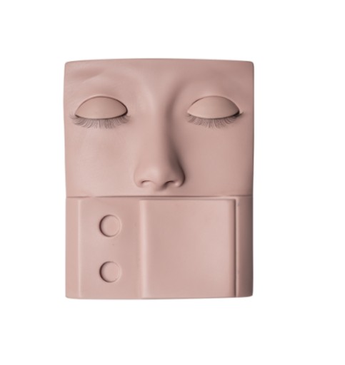 Manekin treningowy przeznaczony do ćwiczenia prawidłowej techniki nakładania sztucznych rzęs. Posiada na swojej powierzchni kilka wgłębień przeznaczonych na krople kleju oraz część do umieszczenia sztucznych rzęs. Niezastąpiony dla osób które rozpoczynają swoją przygodę z przedłużaniem rzęs. Wykonana z PCV , idealnie odzwierciedla prawdziwą skórę.
