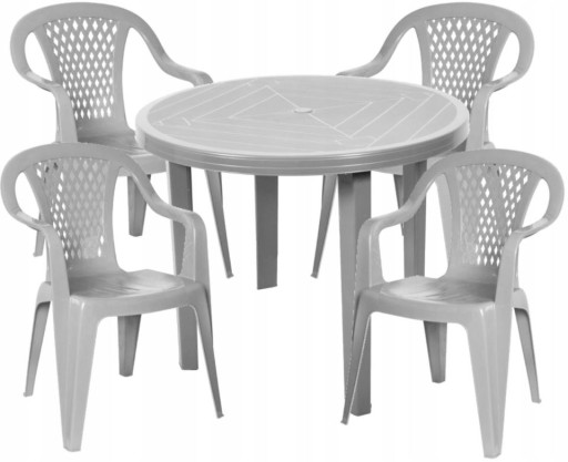 ПЛАСТИКОВЫЙ КОМПЛЕКТ 4+1 СТУЛЬЯ, СЕРЫЙ САДОВЫЙ СТОЛ