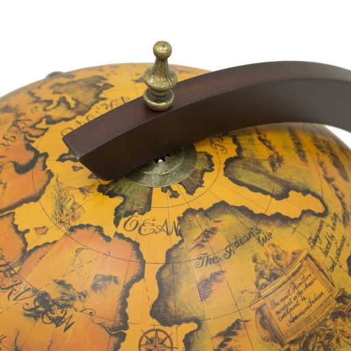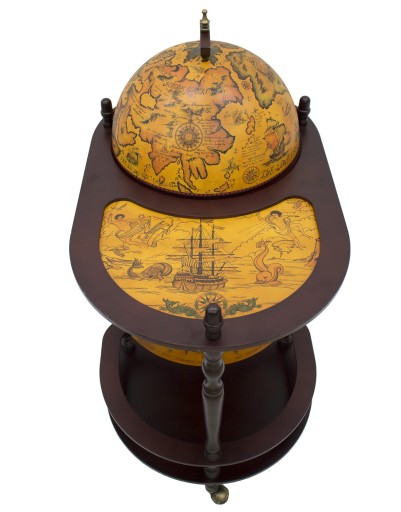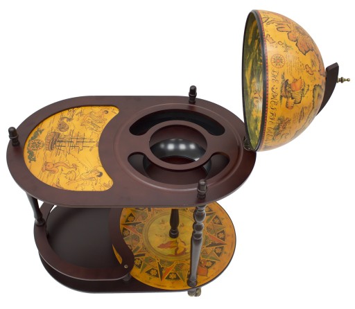 Elegancki, efektowny barek w formie globusa ze stolikiem na kółkach jest doskonały do przechowywania butelek z alkoholem i kieliszków. Łączy funkcję dekoracyjną z funkcjonalnością. Może znaleźć zastosowanie w domu, biurze i wszędzie tam, gdzie chcesz przyjąć gości w efektownym stylu. Idealnie komponuje się we wnętrzach stylizowanych jak i nowoczesnych