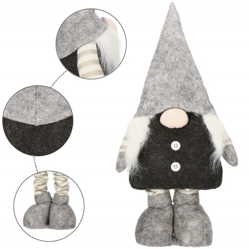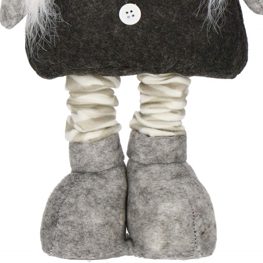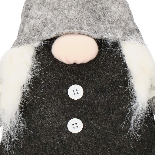 Uderzająca jest precyzja i dbałość, z jaką wykonany został nasz świąteczny kolega-krasnal o ujmującej powierzchowności. Każdy element dopełnia charakterystykę tego jowialnego, poczciwego gnoma: wysoka, miła w dotyku czapeczka, gęste włosy, i okrągły nochal, Stabilna podstawa jest gwarancją, że skrzat będzie nieruchomo stał i nie ucieknie z wybranego dla niego miejsca