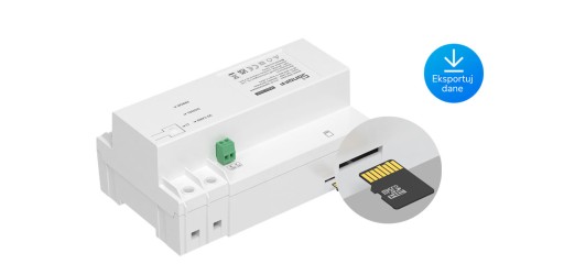 Teraz możesz zapisać historię pomiarów zużycia energii z ostatnich 180 dni. Przełącznik został wyposażony w slot na kartę SD (8-32 GB, SDHC). Dzięki temu pozwala wygodnie eksportować dane i daje Ci pewność, że nie stracisz żadnej ważnej informacji. Montaż przełączników SPM-Main i SPM-4Relay również nie sprawi Ci problemu. Możesz z łatwością zamontować je na szynie prowadzącej. Uwaga: karta SD nie wchodzi w skład zestawu.