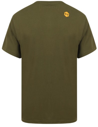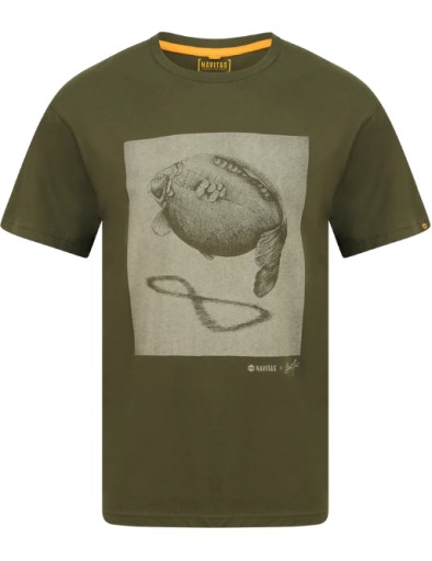 Zielony T-shirt bawełniany z charakterystycznym motywem karpia na całej klatce piersiowej.