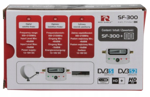 Miernik SF-300 RED EAGLE jest przeznaczony do pomiarów sygnałów telewizji satelitarnej. Urządzenie pozwala na pomiar tylko procentowy sygnału z konkretnej częstotliwości (transpondera). Pomiary te są tylko procentowe jak w tunerach. Wyszukanie sygnału satelitarnego sygnalizowane jest graficznym wskaźnikiem na wyświetlaczu oraz sygnalizacją dźwiękową.