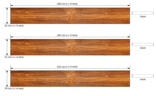 - Deski dostępne w trzech szerokościach (16cm, 25cm oraz 13cm deska rustykalna)