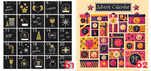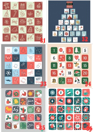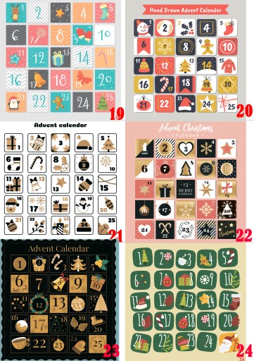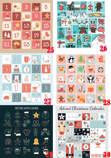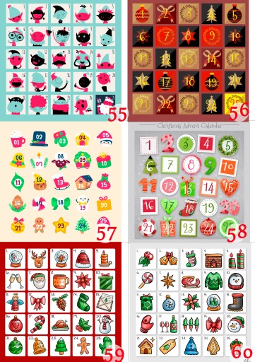 Kalendarz Adwentowy torebki naklejki 25 szt wzory