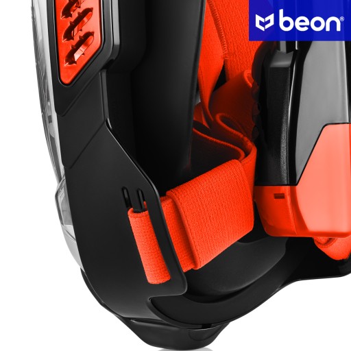 W masce Beon Pro G4 użyliśmy mechanizmu klamrowego, łączącego fajkę z maską. Dzięki temu fajka jest zawsze przytwierdzona do maski, nawet po złożeniu.