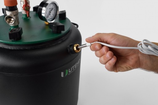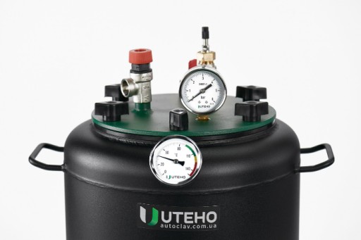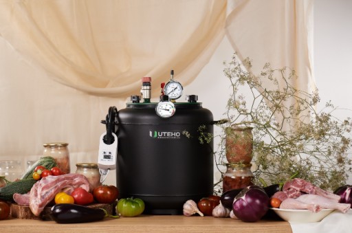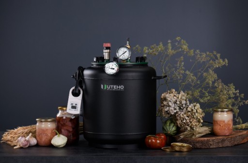Następne są autoklawy z serii "UTech". Są to również autoklawy wykonane z czarnego metalu, ale z ulepszoną, droższą konstrukcją pokrywy. Szyjka w tym autoklawie ma średnicę 17 cm, co pozwala na załadowanie słoików o dowolnym rozmiarze. Ponadto konstrukcja pokrywy na kołkach gwarantuje szczelność i wygodę użytkowania w każdych okolicznościach.