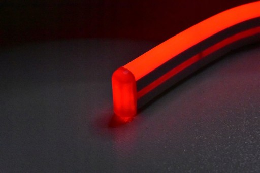 Elastyczna taśma led zamknięta w szczelnym wężu gdzie tylko jedna krawędź świeci.