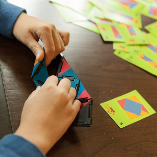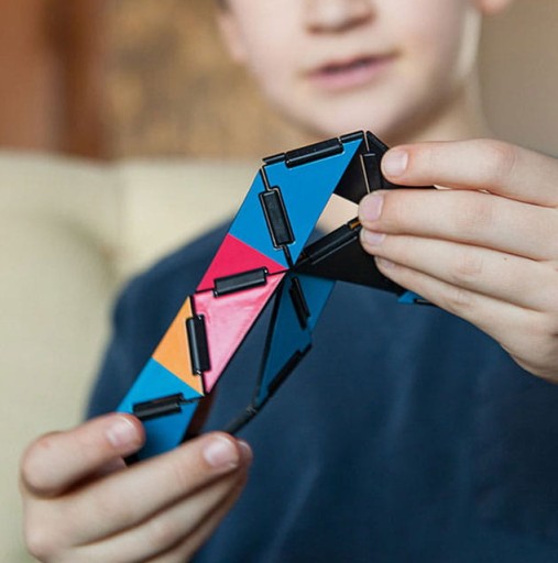 ✅ Łamigłówka zbudowana jest z korowych trójkątów połączonych ruchomymi zawiasami. Dzięki zawiasom, układankę można składać, wykręcać, zakręcać, zginać, wyginać od środka i na zewnątrz. Samo składanie trójkątów w różne kompozycje i figury to świetna zabawa dla rąk. Gdy dodamy do tego wzory do ułożenia zaczynają pracować szare komórki dziecka. Nie jest to takie proste, na jakie wygląda. Zanim uda się złożyć puzzle, tak aby odpowiadały wzorowi, dzieci się nieźle nagłowią.