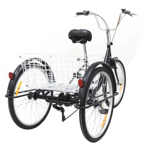 - Ten tradycyjny 6-biegowy 24" 3-kołowy rejs trzykołowy dorosłych trójkołowy z koszem, jest specjalnie zaprojektowany dla osób starszych.