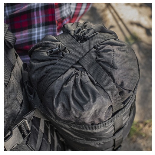 UWAGA! Przedmiotem oferty jest worek kompresyjny Medium marki M-Tac w kolorze Czarnym. Pozostałe elementy służą wizualizacji funkcjonalności.