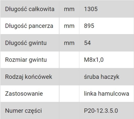 DŁUGOŚĆ CAŁKOWITA: 1305mm