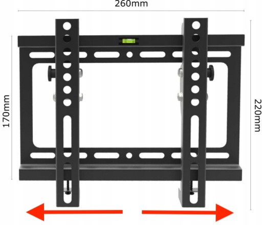Uniwersalny uchwyt naścienny do telewizorów o rozmiarze 17 – 42” cali z możliwością regulacji nachylenia od 0 do +15 stopni.