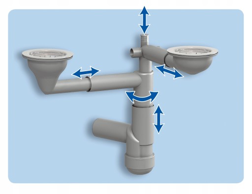 Odpływ od A do Z! Aby nasza oferta była kompletna, zawiera też kielichy odpływowe na teleskopowych ramionach, które można regulować w poziomie i w pionie. Oszczędzają one miejsce i są kompatybilne z różnymi rodzajami syfonów.