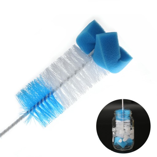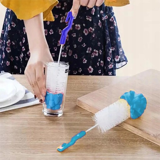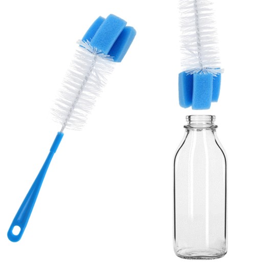 ✅Szczotka posiada na końcu gąbkę, która delikatnie myje powierzchnie szklane i plastikowe bez zbędnych zarysowań.