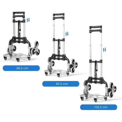 Regulacja wysokości - teleskopową rączkę można regulować na 3 poziomach (68.5, 85.5 oraz 106.5 cm), dzięki czemu z łatwością dostosujesz wózek do swoich potrzeb