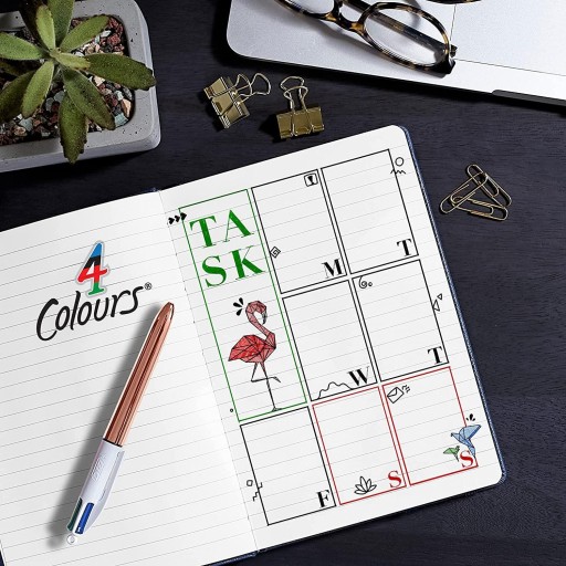 Odkryj nowoczesny styl z długopisem BIC 4 Rose Gold, gdzie elegancja spotyka się z funkcjonalnością. Cztery średnie końcówki o szerokości 1 mm, w kolorach niebieskim, czarnym, czerwonym i zielonym, które doskonale sprawdzą się w każdej sytuacji - od pisania po rysowanie czy organizowanie notatek.