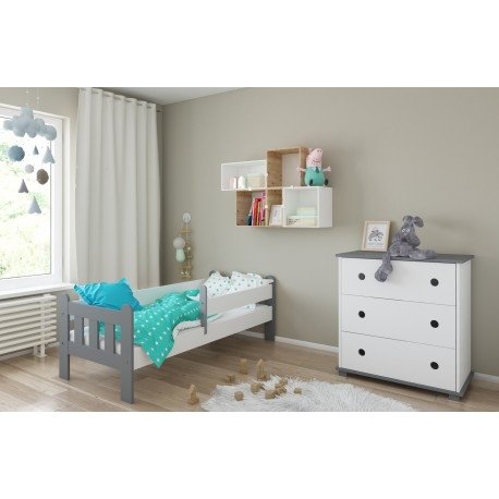 Łóżko STAŚ zbudowane jest z drewna sosnowego (stelaż), płyty MDF lakierowanej (czółka) i z płyty wiórowej laminowanej. Jest nie tylko mocne, ale i bezpieczne - dwa zabezpieczenia boczne i nisko położony materac to gwarantują.
