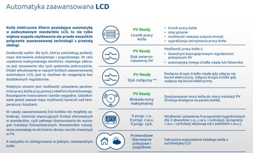 - grzałki ze stali nierdzewnej SELFA (obciążenie, 13W/cm2 = duża trwałość);