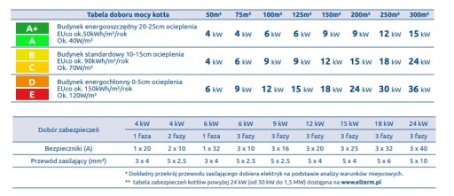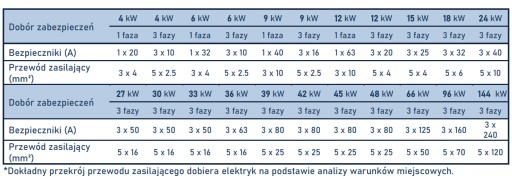 - Przewód zasilający w mm2 - 3 fazy: 3x6