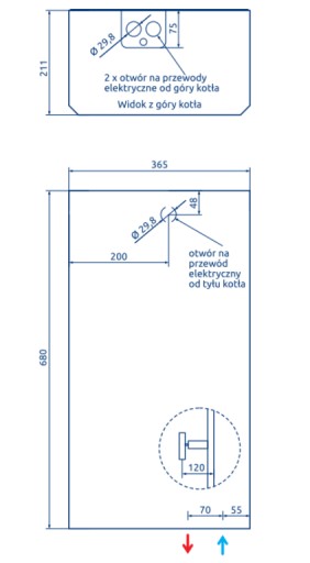 - ocieplenie kotła wełna mineralna λ0,042W/m2K;