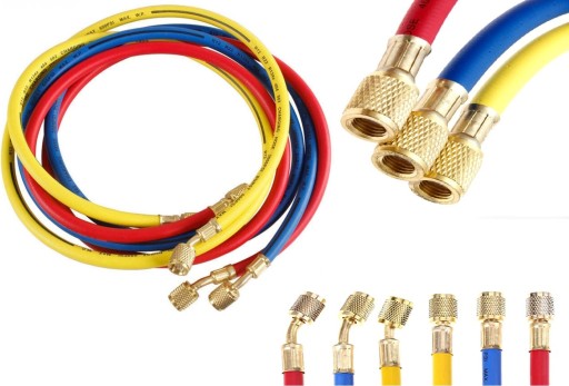 Przewody posiadają standardowe przyłącza stosowane przy manometrach do czynnika chłodniczego lub przy stacjach klimatyzacji.