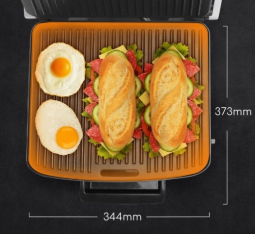 - Z uwagi na dużą przestrzeń między dolną i górną płytą możesz przygotować nawet duże kanapki.