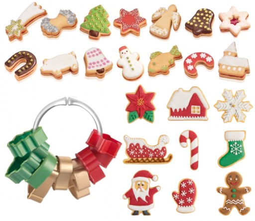 Doskonałe do wykrawania tradycyjnych ciastek. Zestaw zawiera 13 foremek na metalowym krążku ułatwiającym przechowywanie. Foremki zostały wyprodukowane z wysokiej jakości wytrzymałego plastiku. Można myć w zmywarce.