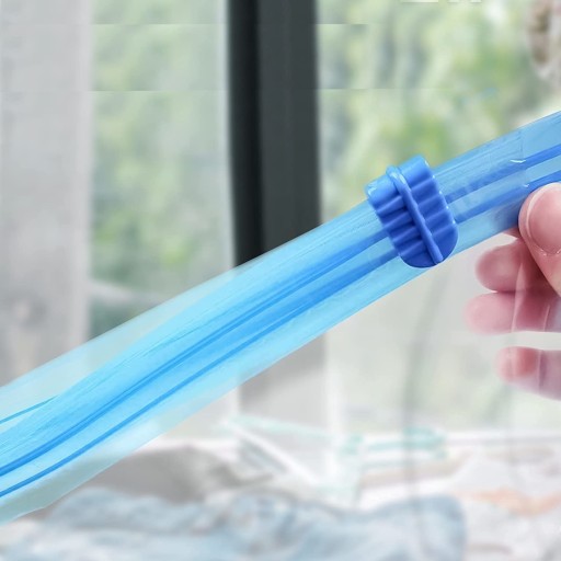 - Następny przy pomocy specjalnego suwaka zamykamy szczelnie worek