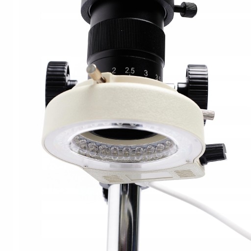 Źródło światła z diodami LED ze ściemniaczem. Średnica pierścienia ma odpowiednio 60mm wewnątrz i 95 mm od zewnętrznej strony.Oświetlacz pierścieniowy zapewnia chłodne, równomierne, intensywne i skupione podświetlenie bez cieni.