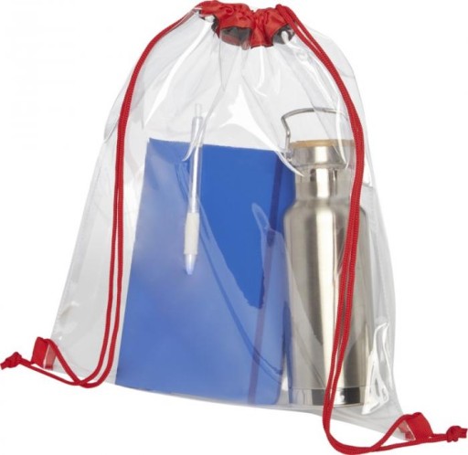 Plecak PRZEZROCZYSTY TRANSPARENTNY CZERWONY SZNURE