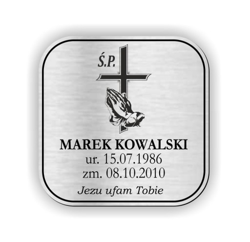 - Tabliczka wykonana z laminatu grawerskiego o grubości 3 mm, zewnętrzna, kolorowa warstwa laminatu jest grubsza, dzięki temu bardzo trwała, nie wygina się. Sprawdzi się przy montażu za pomocą wkrętów zarówno na krzyżu jak i na płycie.