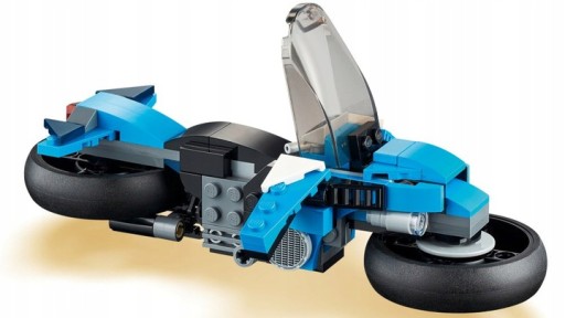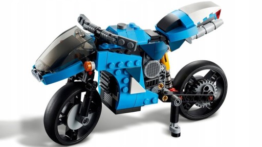 - Zestaw LEGO® Creator 3 w 1 Supermotocykl (31114) zachęca, by ruszyć wyobraźnią i oddać się budowaniu. Z klocków można zbudować trzy modele — nowoczesny motocykl, klasyczny motocykl oraz futurystyczny latający motocykl.