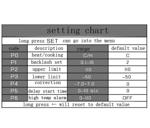- P6 - alarm zbyt wysokiej temperatury możliwość ustawienia 0 do 110*C
