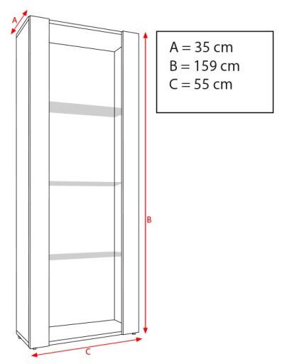 - Witryna stojąca otwarta 160cm pionowa, 3 półki szklane