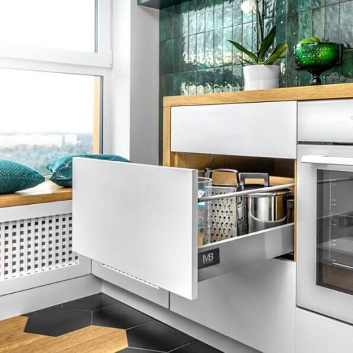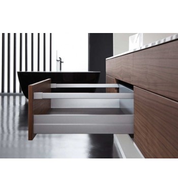 Wyraźne, prostokątne kształty szuflad Modern Box, podkreślają nowoczesny i elegancki styl mebli. Modern Box KWADRATOWY został wyposażony w nowe prowadnice z cichym domykiem oraz pełnym wysuwem, gwarantujące wygodne i ciche użytkowanie przez długie lata. Akcesoria uzupełniające system – przegrody, boki – dostępne są w długościach od 350 do 550 mm, w kolorze antracyt. Dodatkowym atutem systemu MB KWADRATOWY jest wzmocniona budowa prowadnic, których udźwig (do 40 kg), zapewnia komfortowe i bezawaryjne działanie szuflady z dużym obciążeniem.