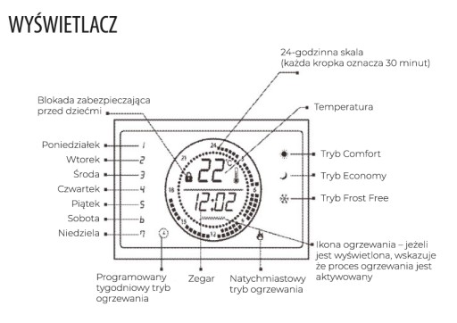 ✳wyświetlacz LCD, 24h-timer, dotykowy przełącznik sterowania