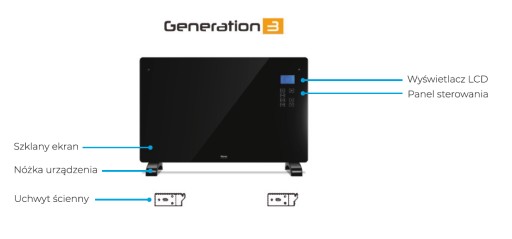 Grzejnik wyposażony jest w dotykowy panel LCD, dzięki któremu sterowanie nim jest jeszcze łatwiejsze. Ponieważ grzejnik jest wyposażony w przewód, jego uruchomienie zajmie kilka sekund.